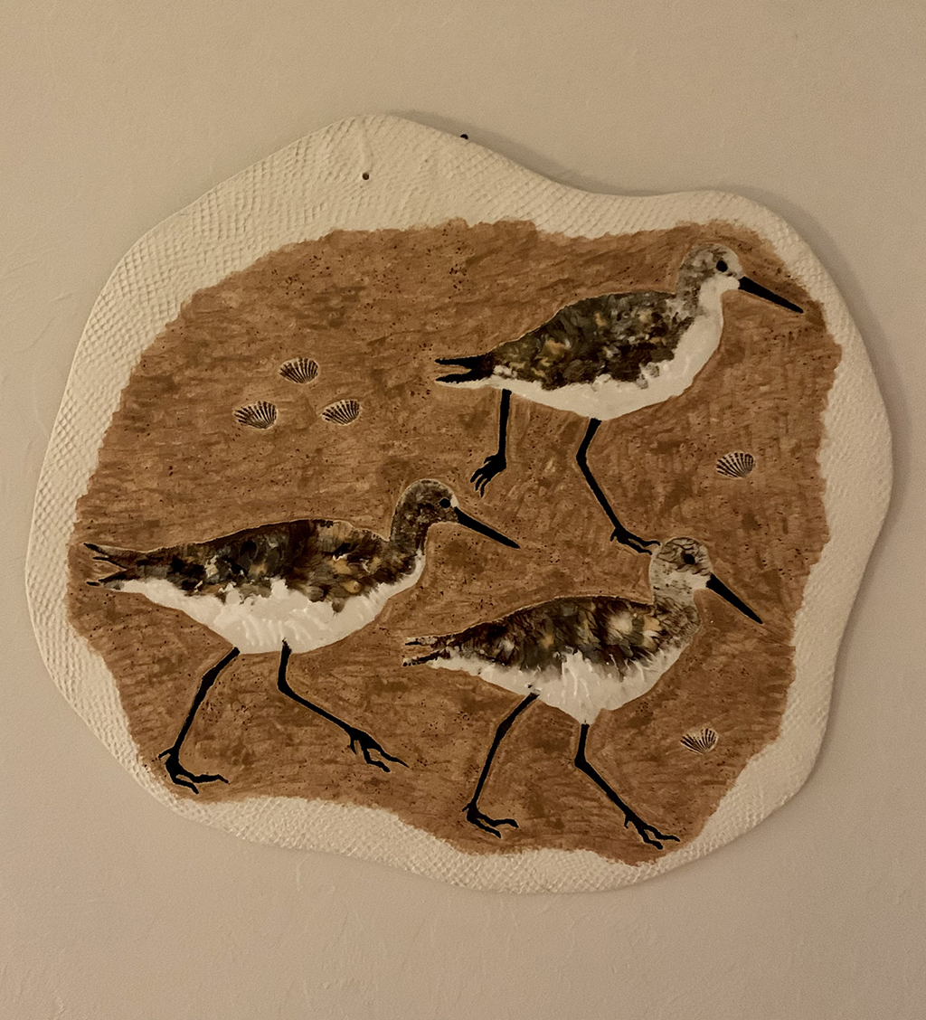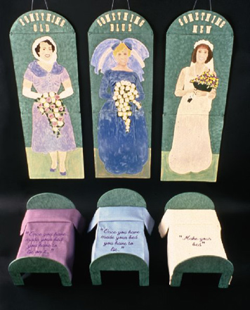 Very recently, I have moved beyond the confines of separately mounted ceramic wall hangings into larger mixed media gallery installations, exhibiting ceramic works in combination with relief prints dealing with the evolution of sexual freedom as ideas of femininity were historically redefined. This move has allowed me to inquire into those familial associations and connections of the most intimate kind.
