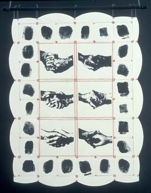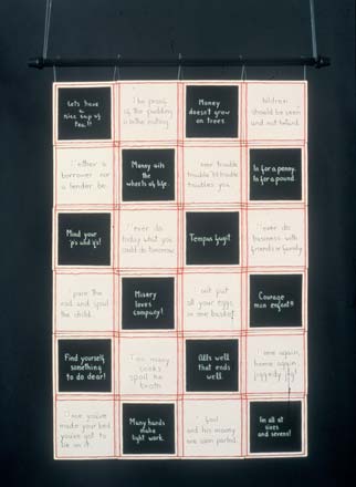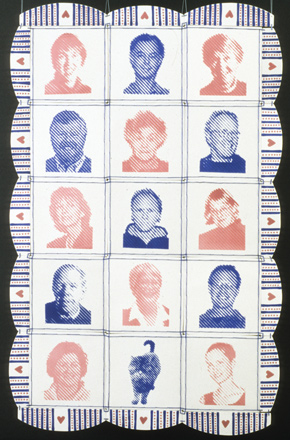 Over the past few years, my work has demonstrated a radical shift, and moved from the exhibition plinth to the walls, creating entirely non-utilitarian ceramic wall hangings that, in their use of repeated patterns and the quilt-like style of display, inquire into the artistic possibilities inherent in the modernist grid, while retaining textile motifs and references. I have developed a technique for silk screening and mono printing representational images on to porcelain slabs that have permitted me to undertake an introspective and highly-charged self-examination in ceramics. This shift to representational imagery in my ceramic wall hangings has opened it up to entirely new possibilities and levels of meaning.